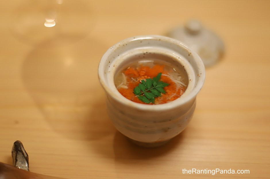 The first course is a Chawanmushi course that features snow crab from Niigata, Japan.