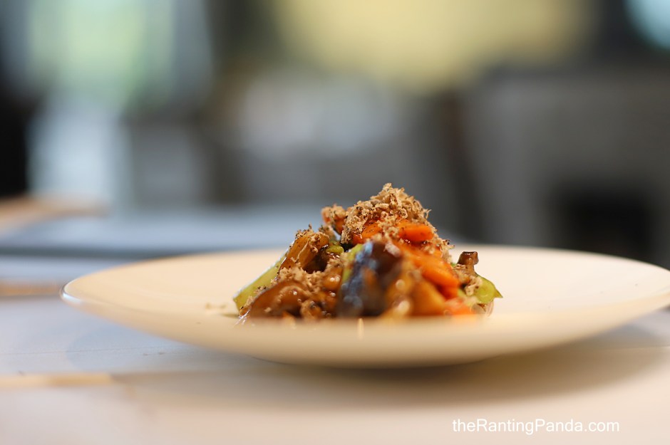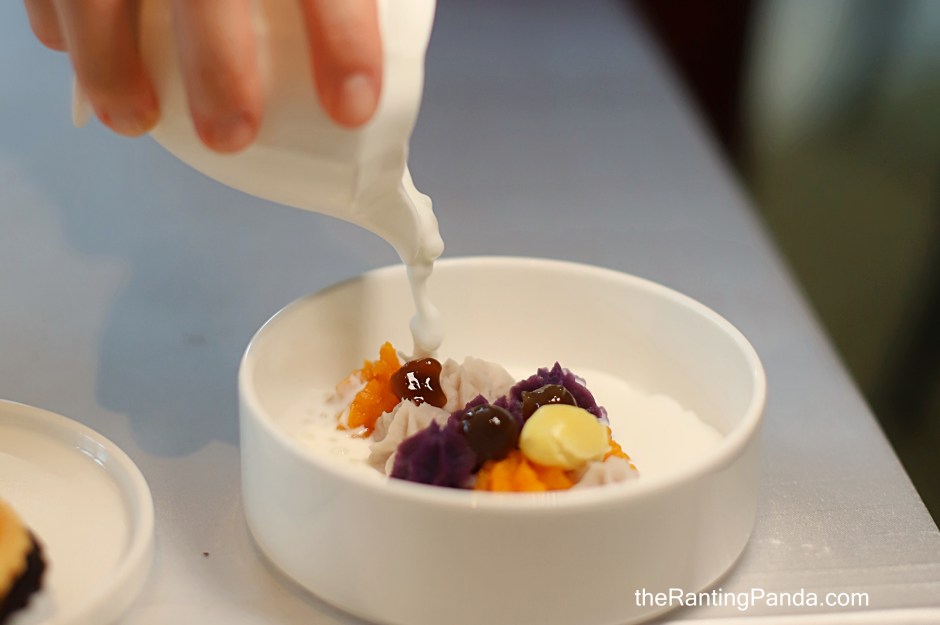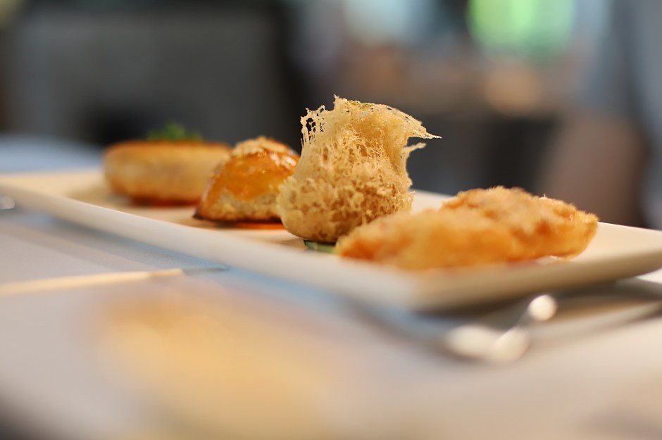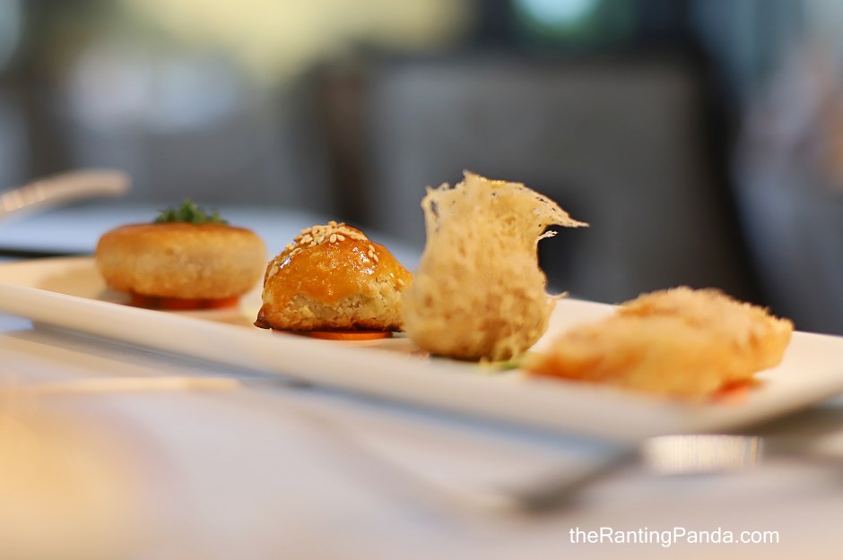 Next up is a series of another quadruple – Crispy Prawn Bean Curd Sheet Roll with Cereal, Deep-fried Sponge Mushroom Yam Dumpling, Oven-baked Mala Char Siew Puff and Pan-fried Black Pepper Wagyu Beef Pancake.