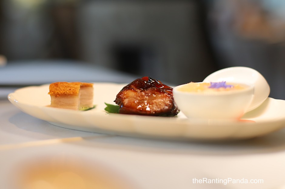 The third part of the set menu features Honey-glazed Kurobuta Pork Char Siew, Roasted Crispy Five Spice Pork Belly and Marinated Jelly Fish Flower, Sesame Dressing. Not too surprising in terms of flavours, but all on point.