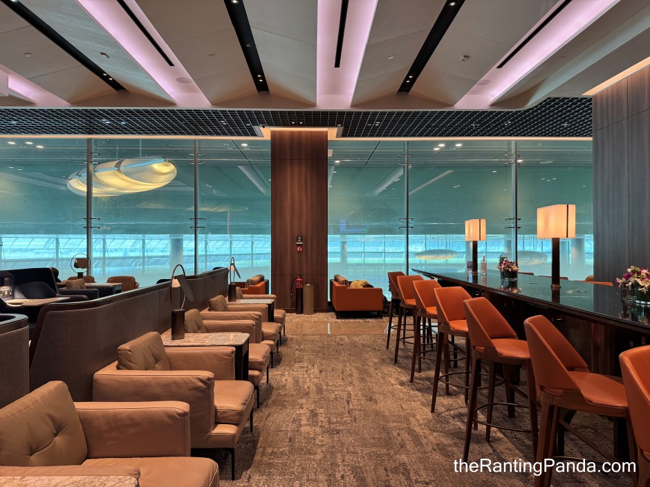 It is a big lounge to say the least, with two main sections once you enter on the right and left side. Following a major renovation a few years ago, the space now spans over 32,000 square feet and can accommodate up to 570 guests. Despite its capacity, the layout is designed to feel intimate, with distinct zones for dining, relaxing, working, and even sleeping.