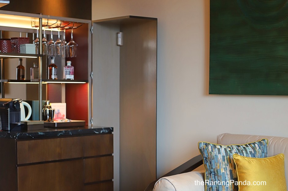 The minibar is complimentary for guests, where comes with cocktails, gin, snacks, coffee and tea.