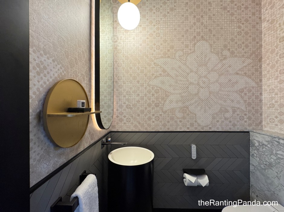 The toilet bowl is in a separate space which makes it convenient for guests.