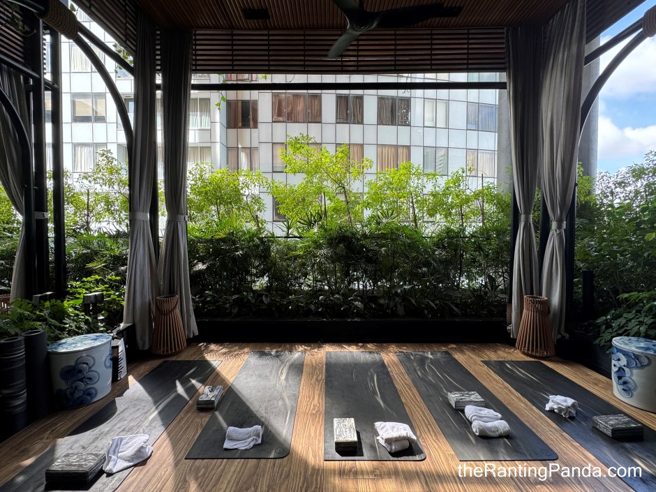 The hotel also emphasises movement and wellness through curated programmes such as yoga classes. On the same level as the gym, there is also an outdoor terrace amidst the garden setting with yoga mats.