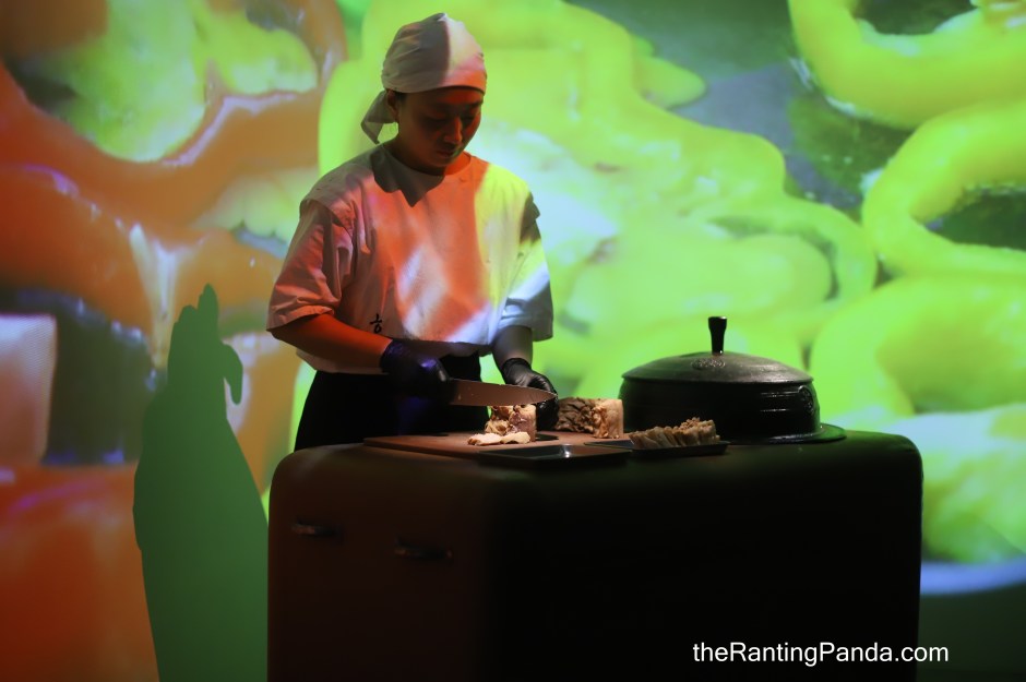 I first walked through a short gallery showcasing the key landmarks of Jeju Island, before being brought into the main dining hall by the staff which takes up an open space concept. The concept of Jeju Haenyeo is a multi-course dining experience paired with live performances and visual storytelling. The idea of the storytelling is to bring diners through the sights, sounds, and spirit of Jeju as each course is served.
