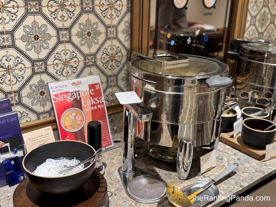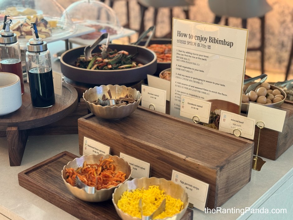 The Food It is a buffet spread where the spread blends Singaporean comfort food, light Western options, and a few Korean touches. Do not expect a sprawling buffet, but do expect quality over quantity. Depending on the time of day, expect dishes like eggs, salad, curry chicken, Korean DIY-style bibimbap, and more.